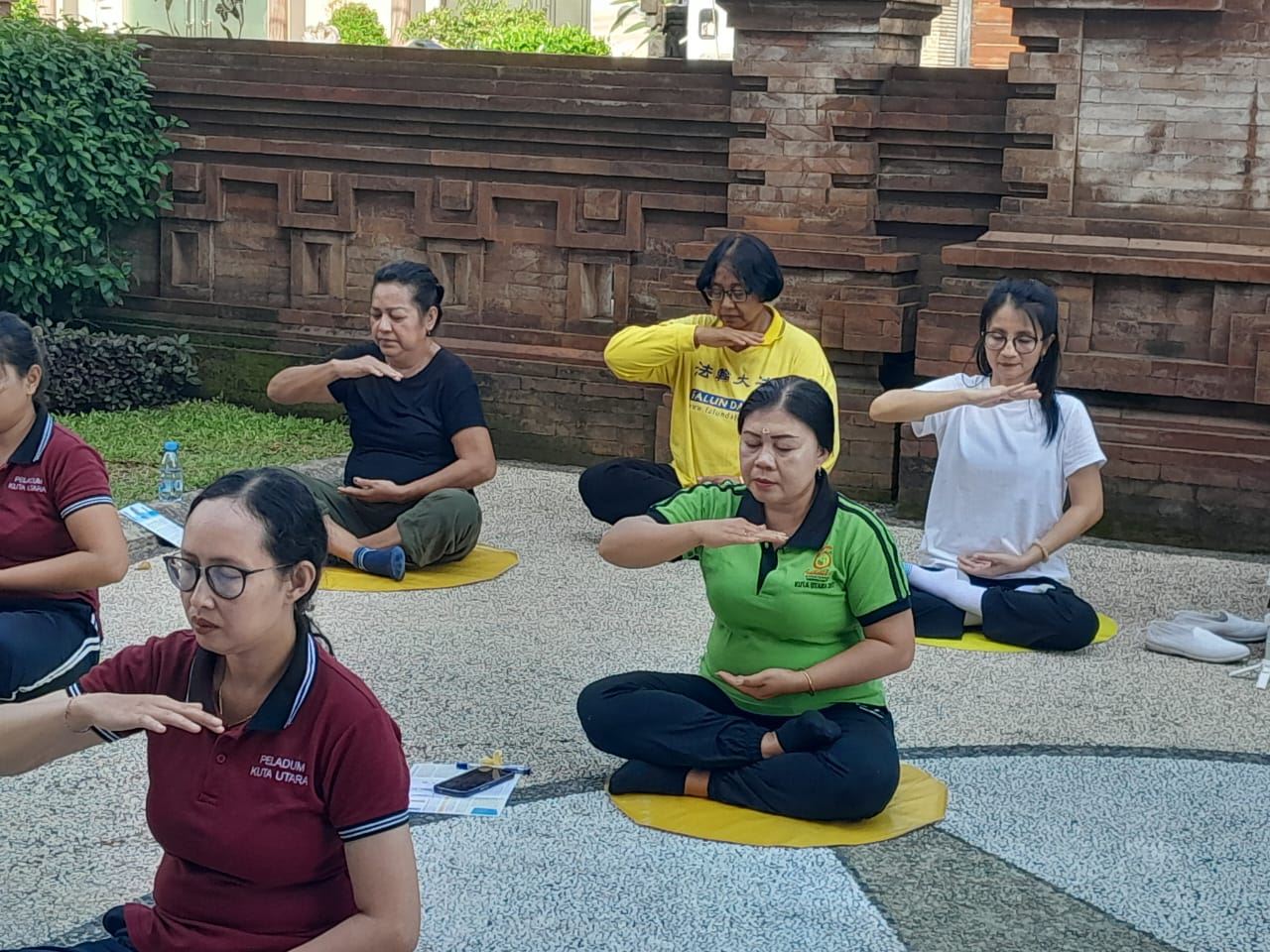 The Head of the North Kuta Subdistrict, I Putu Eka Parmana, S.STP., M.M., warmly welcomed the practitioners to the North Kuta Subdistrict Office and said that she hopes the group practice activities at the office continues in the future.