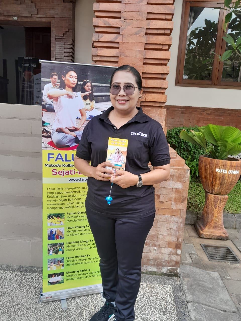 The Subdistrict Secretary, Putu Laksmi Dewi, invited practitioners to show the staff how to do the exercises. Afterwards, she said, “I would like to thank Falun Dafa practitioners for coming to our office today. I hope that with the start of today’s practice, we can continue to hold regular practice sessions here and gain the benefits of practicing Falun Dafa.”