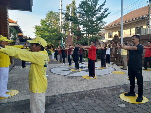 This was the first time that Gede Bayu Pramana, Acting Head of the Government Section, tried the exercises. He said, “I already felt changes in myself. I feel calmer. Yesterday I felt dizzy, but today after practicing, I feel much better,” he said. “I want to continue practicing so I hope the Falun Dafa exercises are held here again.”