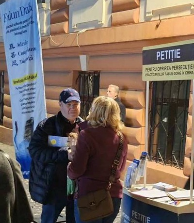 (Minghui.org) Falun Dafa practitioners set up an information booth at EXPONATURA 2025 at VIVO Mall Constanța, from October 23 to 26, 2025. On November 1, they held a similar event in the old town center of Brașov. They handed out informational materials to passersby, talked to people, and collected signatures on a petition calling to stop the Chinese Communist Party’s (CCP) persecution of Falun Dafa (also known as Falun Gong).