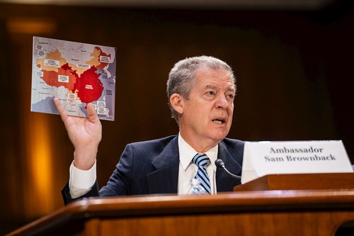 Ambassador Sam Brownback addresses the congressional hearing on religious freedom in China.