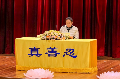A practitioner said she was filled with grief after her husband passed away, but reminded herself that she needed to “stand up again and continue cultivating.” One month after her husband died, encouraged by the other practitioners, she agreed to lead a project. Others complimented her on her voice when she read the Fa. She realized that Master gave her a good voice so she could participate in the Dafa project. She overcame her fear and attachment to comfort. She said she would not let up in her cultivation.