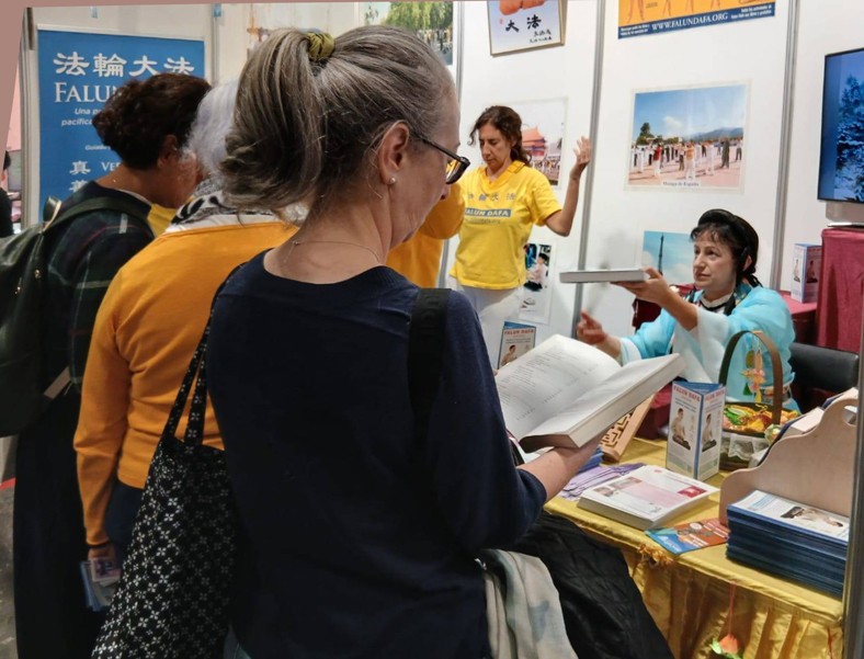 (Minghui.org) Falun Dafa practitioners participated in BioCultura Madrid 2025 at IFEMA Madrid from November 6 to 9, 2025. BioCultura is Spain’s leading organic trade event and features organic products and encourages responsible consumption.This year the annual event attracted more than 600 exhibitors and over 60,000 visitors. Falun Dafa practitioners are invited to participate every year.