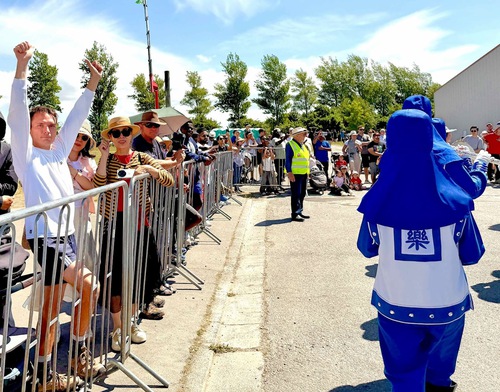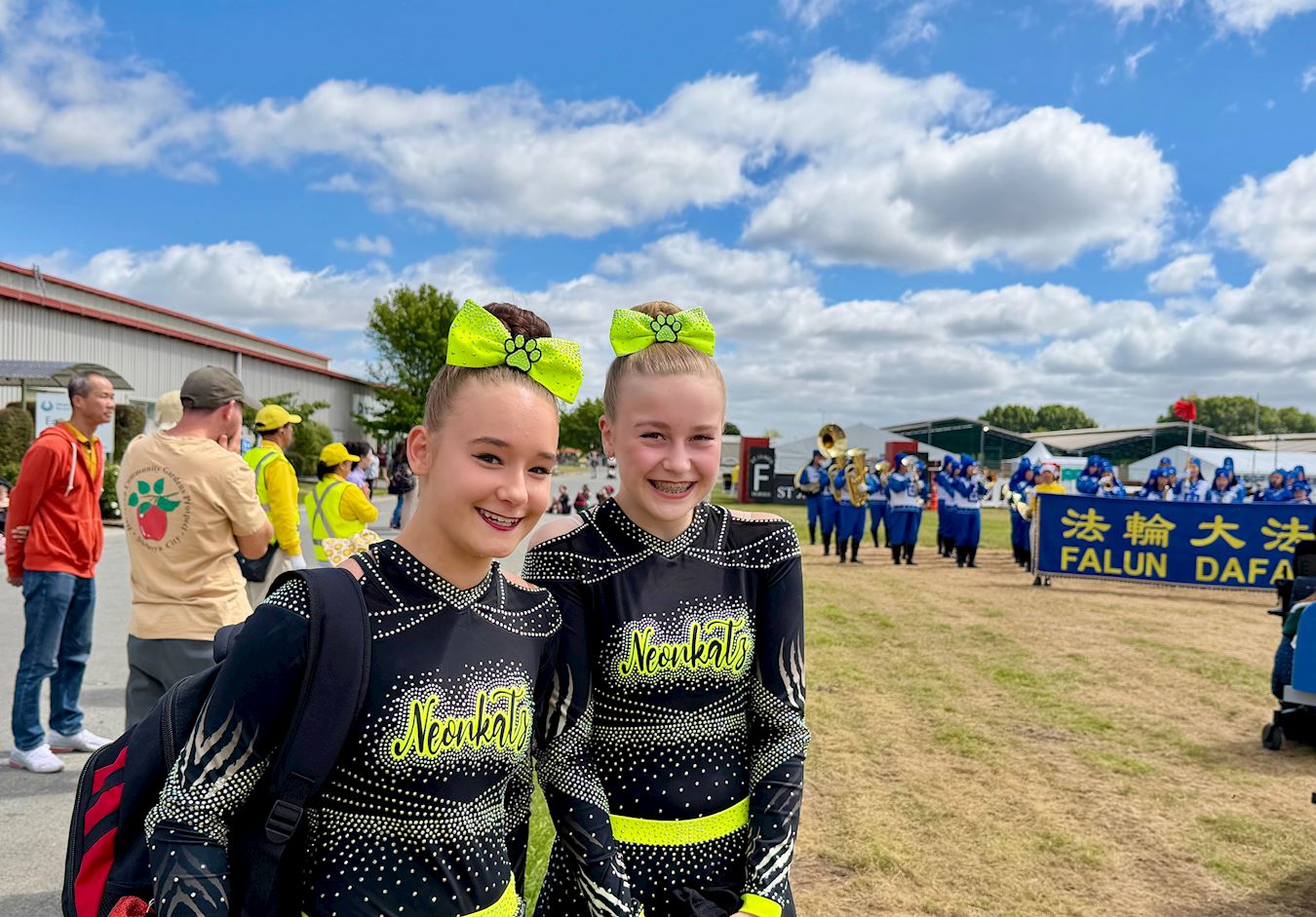 Two young cheerleaders, Izzy and Lily, said they liked the Tian Guo Marching Band’s performance. “I like trumpets. The sound is powerful,” said Izzy. They spoke highly of the eye-catching clothes, “The outfit is so cool! They get full marks.”