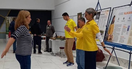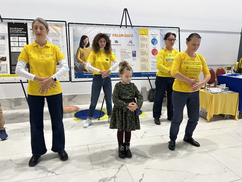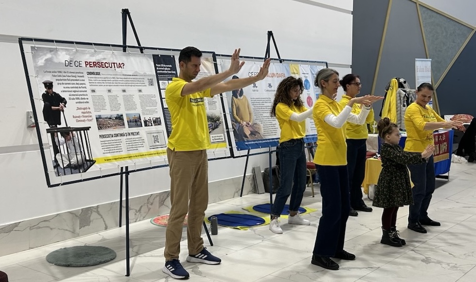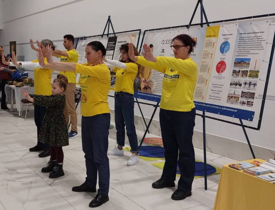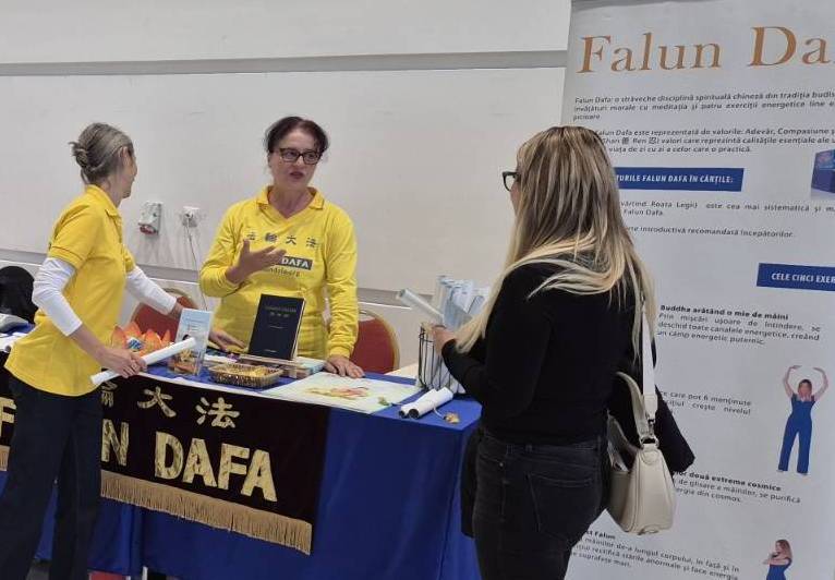 (Minghui.org) Falun Dafa practitioners participated in the Ezoteric Fest in Timișoara from November 7 to 9. During the event, practitioners demonstrated the exercises, and interested individuals joined in to learn them.