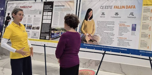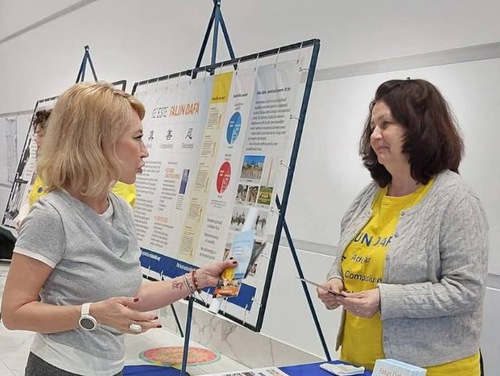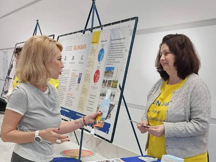 Maria and Liana were delighted to learn about Falun Dafa, took the informational materials, and obtained the contact information of the practitioner in Timișoara. Liana purchased the book, Falun Gong. The ladies said they wished to hold a presentation of the exercises at their association, where many people gather.