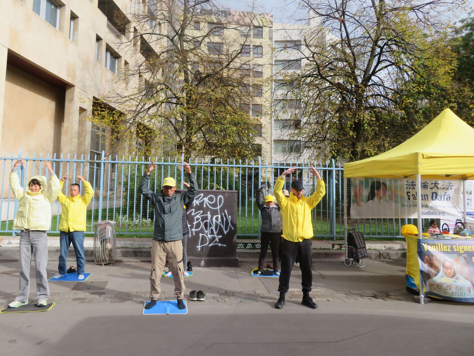 (Minghui.org) Falun Gong practitioners recently held activities to raise awareness of the ongoing persecution in China. They demonstrated the exercises and collected signatures on a petition calling to end the persecution in China at Place d’Italie and Belleville, Paris, on October 25 and 28, 2025.