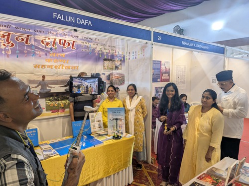 (Minghui.org) Falun Dafa practitioners participated in the 23rd annual Pune Book Fair, which took place from October 30 to November 2, 2025. This event is Western India’s largest book, culture, and education fair, and was organized by the Expo Centre with the support of the Education Department of the Government of Maharashtra and the Suryadatta Group of Institutes.