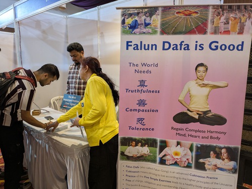Mr. Ghanekar shared, “I am an avid reader and mostly enjoy books on spirituality. I sensed a good energy at the stall and would like to read more about Falun Dafa.” He purchased a book and expressed his intention to contact practitioners to learn more about the practice.