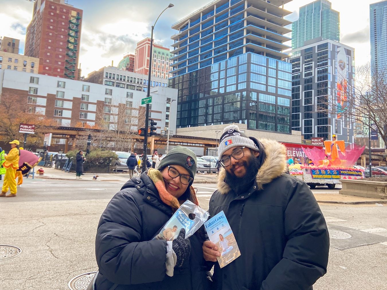 (Minghui.org) The 91st Chicago Thanksgiving Parade was held on November 27, 2025. It was the coldest day of the winter so far in Chicago, yet many spectators lined the streets to watch.