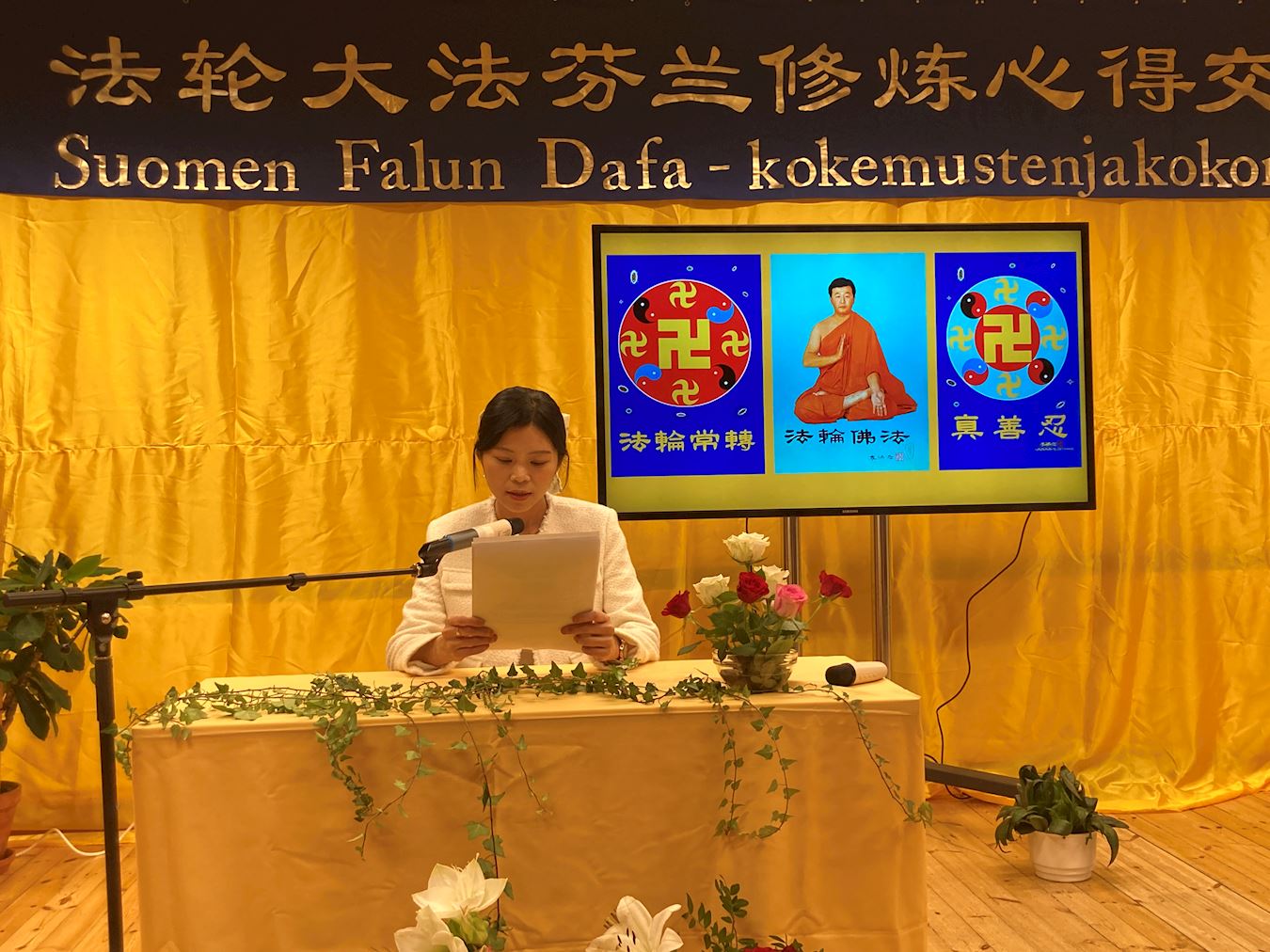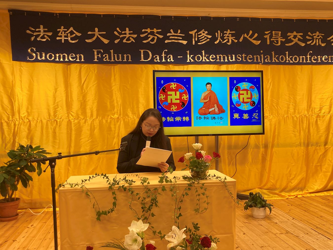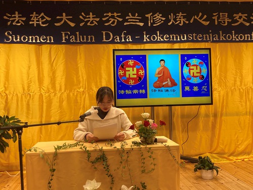 (Minghui.org) The 2025 Finland Falun Dafa Cultivation Experience Sharing Conference was held in Helsinki on December 7, 2025. Fourteen Falun Dafa practitioners shared their experiences on stage. The conference provided simultaneous interpretation in four languages: Chinese, Finnish, English, and Vietnamese, making it convenient for participants who speak various languages to listen and benefit from the presentations.
