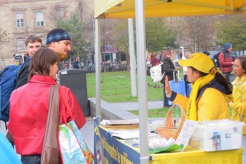They demonstrated the Falun Dafa (Falun Gong) exercises, performed on waist drums, and talked to people about the Chinese Communist Party’s (CCP) ongoing persecution of this mind-body cultivation practice. Many people signed a petition that calls to end the persecution in China.