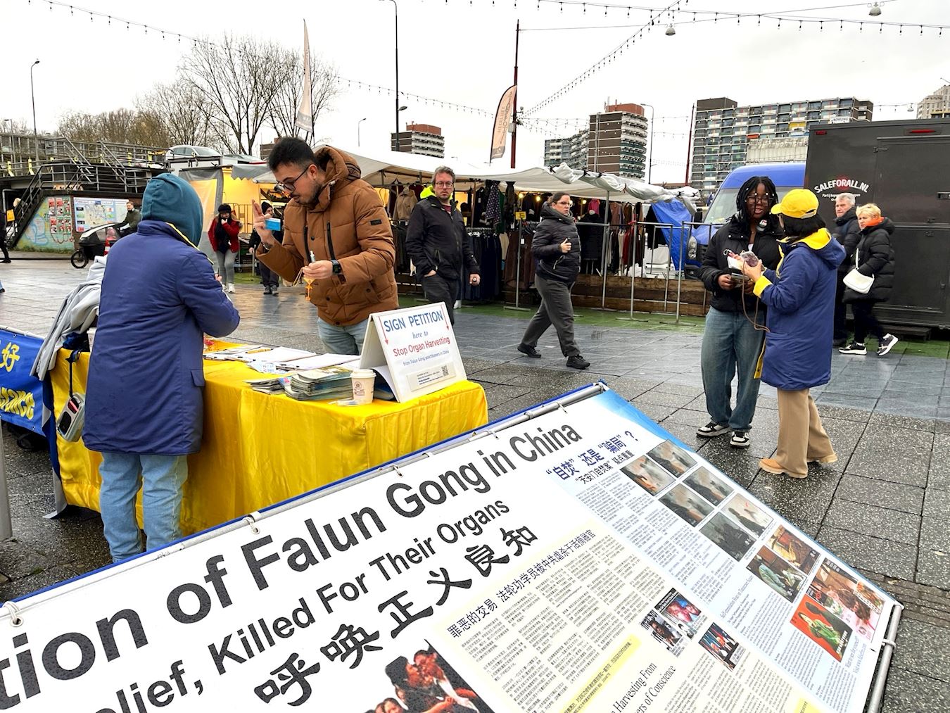 (Minghui.org) The Dutch truth-clarification tour group held an information day event in Amsterdam on December 6, 2025. Many people learned about Falun Gong and signed a petition. A man said, “The Netherlands need to know this. I support you!”
