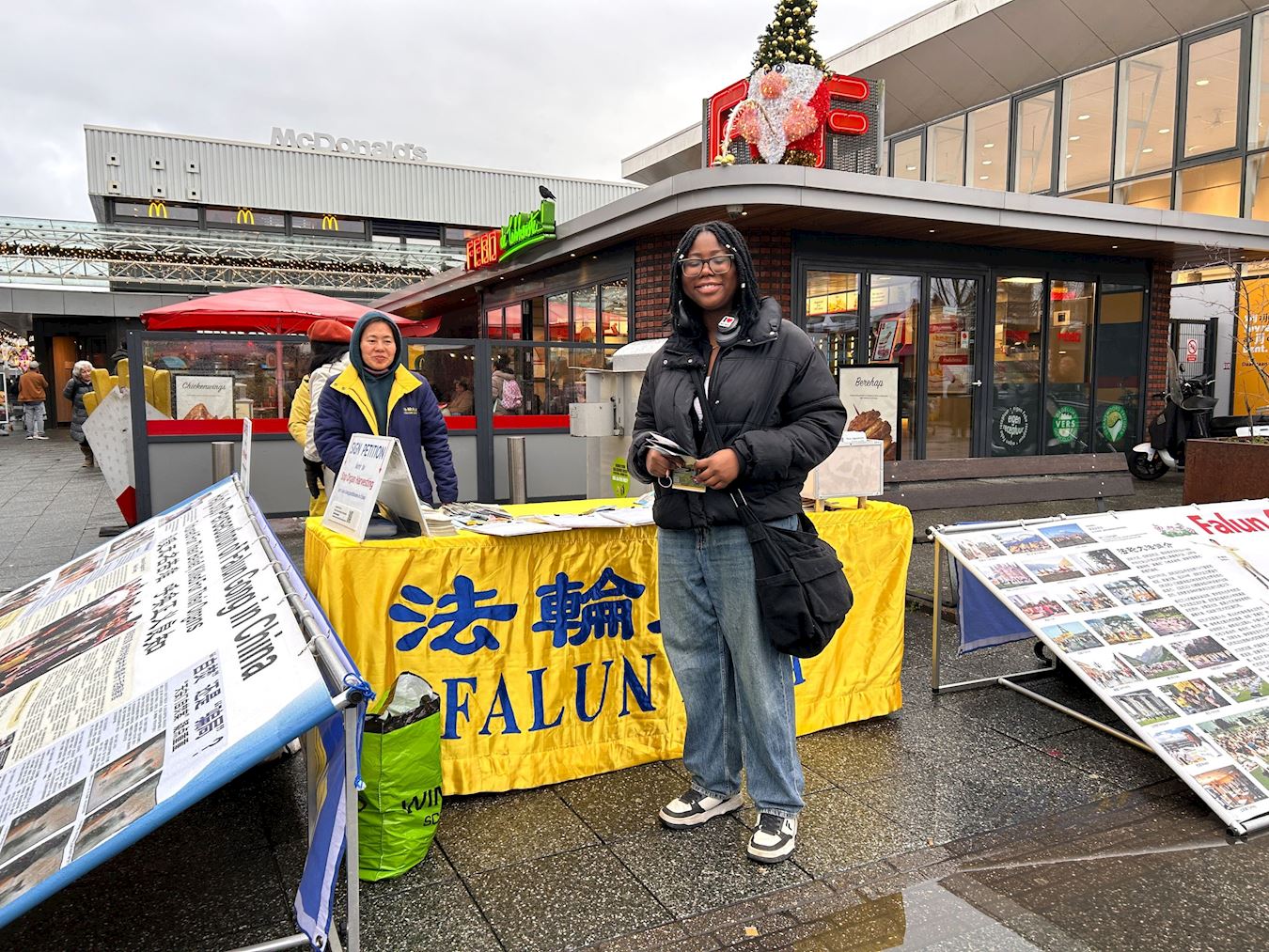 Abena is from Congo and is a new student in the chemical engineering program at the Delft University of Technology. She stepped forward to learn about the persecution and signed the petition without hesitation. “It’s my first time hearing about this,” she said. “Such brutal things should not happen in 2025. I support your efforts to stand up against persecution and oppression.”