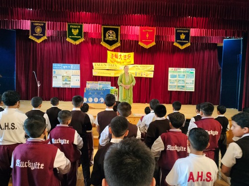 The students who attended came from a variety of backgrounds, including girls’ schools and colleges, children’s homes, special education schools, and a Tibetan school. They expressed their appreciation for the exercises and Falun Dafa’s values of Truthfulness, Compassion, and Forbearance. The practitioner also received help from locals who are supportive of the effort to spread Falun Dafa.