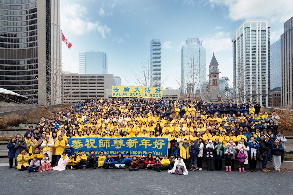 (Minghui.org) Falun Dafa practitioners gathered in front of the Toronto City Hall on December 20, 2025, to celebrate the upcoming New Year. They thanked Master Li, Falun Dafa’s founder, for their good health and for guiding them to improve their relationships with others, and they wished him a happy New Year!