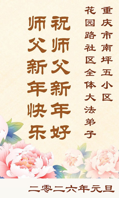 Falun Dafa Practitioners from Chongqing Respectfully Wish Master Li Hongzhi a Happy New Year (104 Greetings)