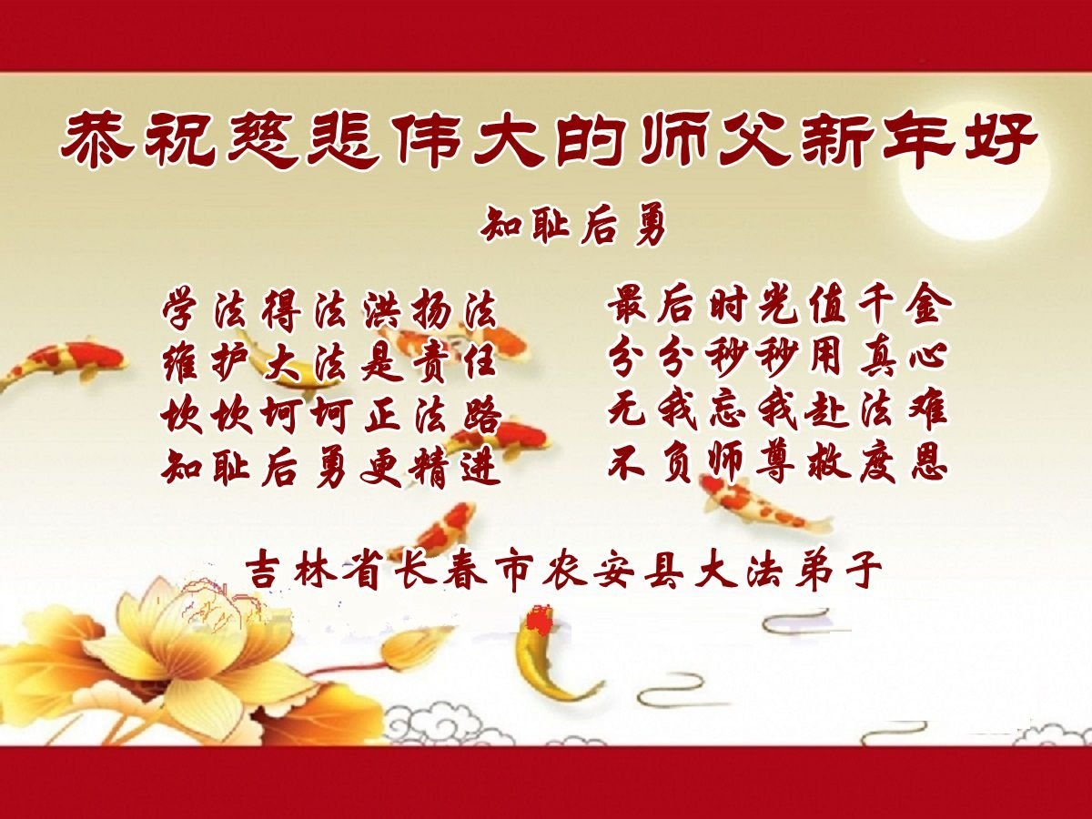 Falun Dafa Practitioners from Changchun City Respectfully Wish Master Li Hongzhi a Happy New Year (112 Greetings)