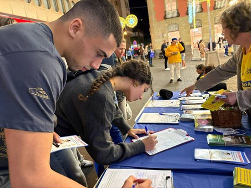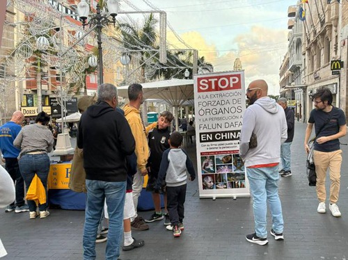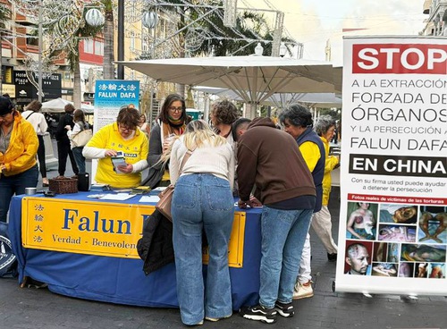(Minghui.org) At a practitioners’ event on the Plaza de Candelaria in Tenerife, Spain, on November 21, 2025, many residents and tourists learned about Falun Dafa and signed a petition calling for an end to the Chinese Communist Party’s (CCP) persecution of Falun Dafas.