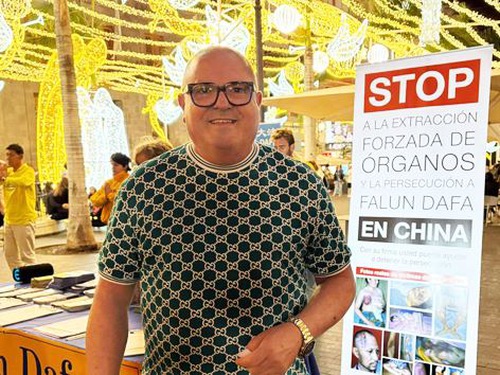 A city government official from La Palma asked a practitioner for more information even though he was on his way to catch a flight. After hearing some facts about the persecution, he said, “I’ll find out more about it. Any democratic government and person with sense of justice should try to stop the Chinese Communist Party’s human rights violations.” He signed the petition and left his email address so he could receive more information.