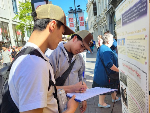 Natalie, who is one-quarter Chinese, and her daughter Tyrallie were drawn by the practitioners’ exercise demonstration, and talked with them for a long time. After signing the petition protesting the persecution, Natalie said that she had known about the suppression of and injustices suffered by Falun Gong practitioners in China for a long time.