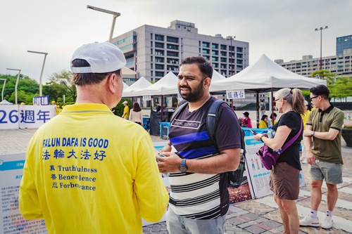 Practitioners in Taiwan have held events every year to commemorate the peaceful appeal in 1999. Residents and tourists read the posters, and talked with practitioners.
