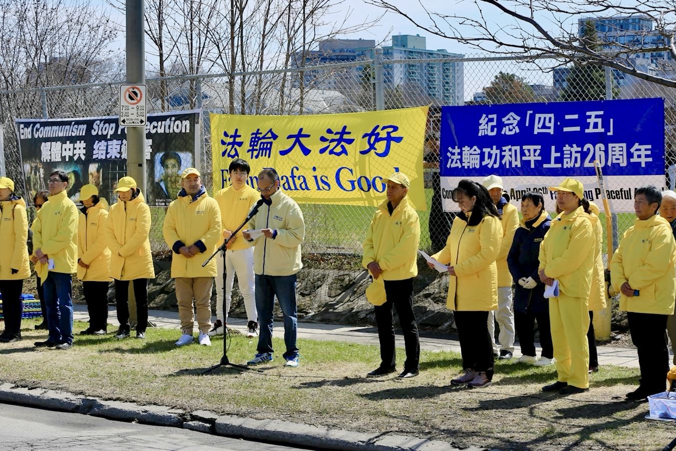 Practitioners gathered in front of the Chinese Embassy to commemorate the 26th anniversary of the April 25 peaceful appeal.