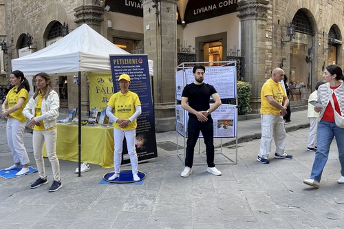 The event in Florence, the birthplace of the Renaissance, was held in the Piazza Santa Maria Novella on April 25. Drawn by the exercise demonstration, many people stopped to ask for more information. They were interested in learning how to practice and said they supported practitioners in China. Many people signed a petition that calls to end the tragedies in China.