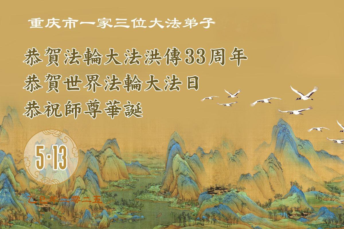 Falun Dafa Practitioners from Chongqing Wish Revered Master a Happy Birthday and Celebrate World Falun Dafa Day!