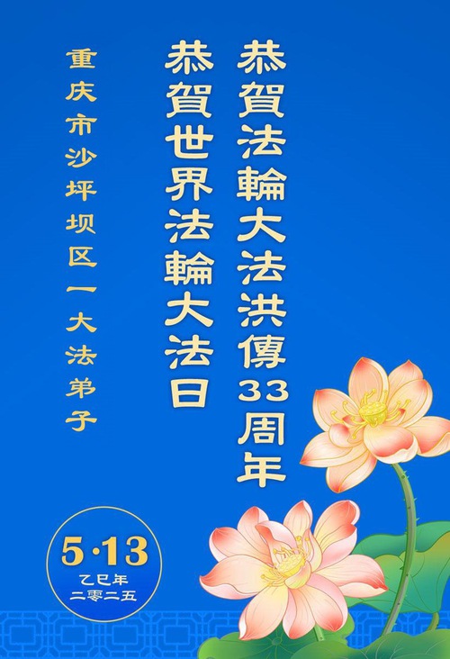 (Minghui.org) May 13, 2025, marks the 26th World Falun Dafa Day and the 33rd anniversary of the public introduction of Falun Dafa. The day is also the birthday of Master Li, the founder of Falun Dafa. Practitioners around the world are sending their heartfelt greetings to celebrate this grand occasion and honor revered Master on this special day.
