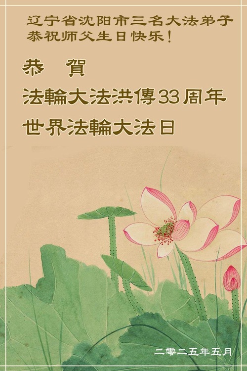 (Minghui.org) May 13, 2025, marks the 26th World Falun Dafa Day and the 33rd anniversary of the public introduction of Falun Dafa. The day is also the birthday of Master Li, the founder of Falun Dafa. Practitioners around the world are sending their heartfelt greetings to celebrate this grand occasion and honor revered Master on this special day.