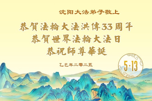 (Minghui.org) May 13, 2025, marks the 26th World Falun Dafa Day and the 33rd anniversary of the public introduction of Falun Dafa. The day is also the birthday of Master Li, the founder of Falun Dafa. Practitioners around the world are sending their heartfelt greetings to celebrate this grand occasion and honor revered Master on this special day.