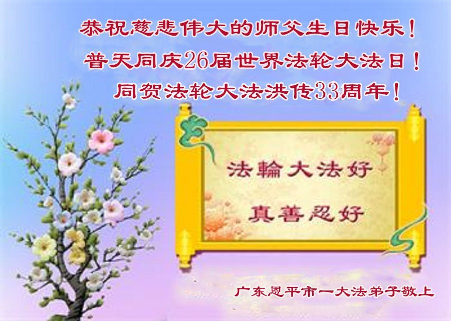 (Minghui.org) May 13, 2025, marks the 26th World Falun Dafa Day and the 33rd anniversary of the public introduction of Falun Dafa. The day is also the birthday of Master Li, the founder of Falun Dafa. Practitioners around the world are sending their heartfelt greetings to celebrate this grand occasion and honor revered Master on this special day.