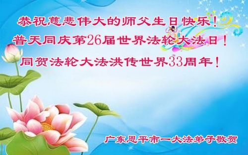 In this report, we present a selection of the 18 greetings sent from Falun Dafa practitioners in Guangdong Province, China.