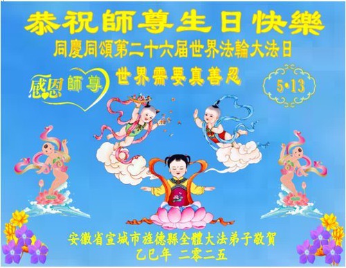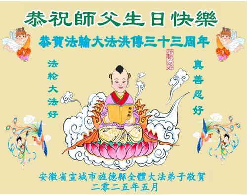 Falun Dafa Practitioners from Anhui Province Wish Revered Master a Happy Birthday and Celebrate World Falun Dafa Day!