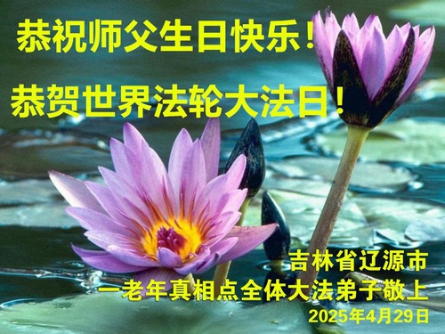 (Minghui.org) May 13, 2025, marks the 26th World Falun Dafa Day and the 33rd anniversary of the public introduction of Falun Dafa. The day is also the birthday of Master Li, the founder of Falun Dafa. Practitioners around the world are sending their heartfelt greetings to celebrate this grand occasion and honor revered Master on this special day.