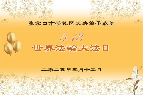 Falun Dafa Practitioners from Zhangjiakou City Wish Revered Master a Happy Birthday and Celebrate World Falun Dafa Day!