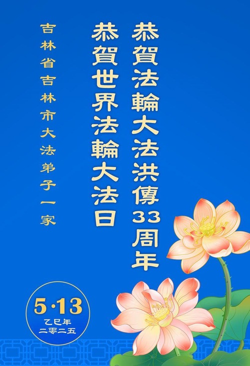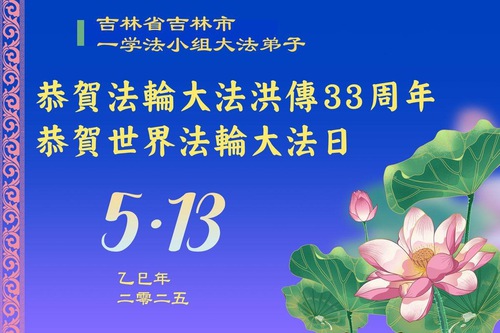 (Minghui.org) May 13, 2025, marks the 26th World Falun Dafa Day and the 33rd anniversary of the public introduction of Falun Dafa. The day is also the birthday of Master Li, the founder of Falun Dafa. Practitioners around the world are sending their heartfelt greetings to celebrate this grand occasion and honor revered Master on this special day.