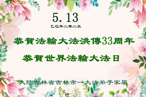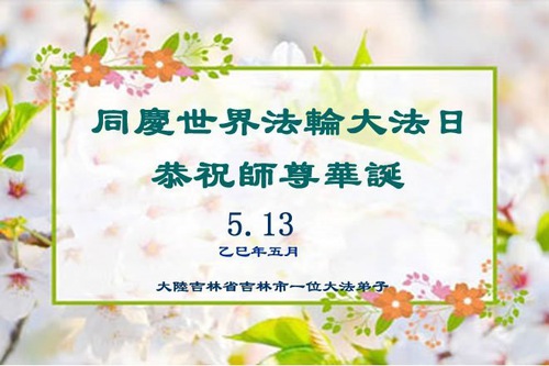 Falun Dafa Practitioners from Jilin City Wish Revered Master a Happy Birthday and Celebrate World Falun Dafa Day!