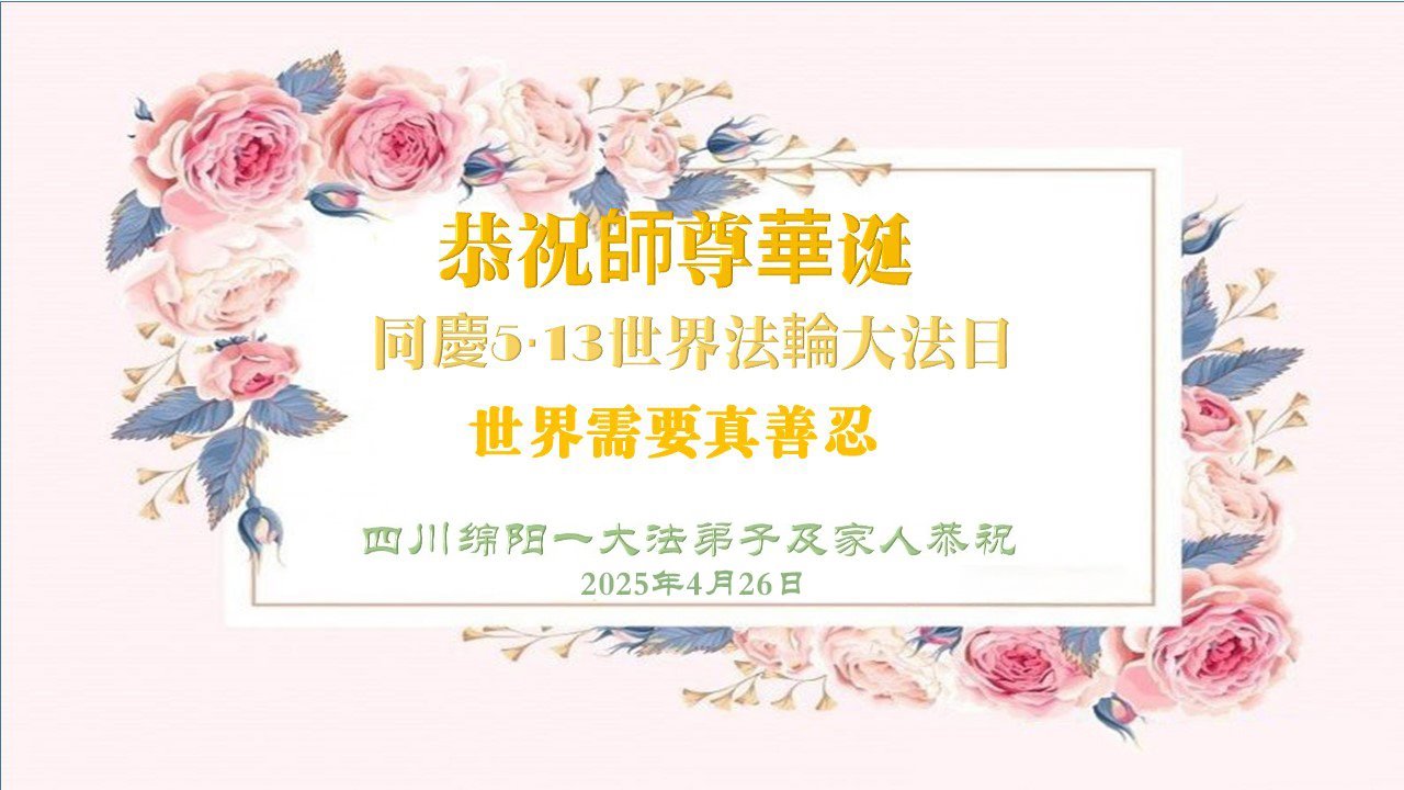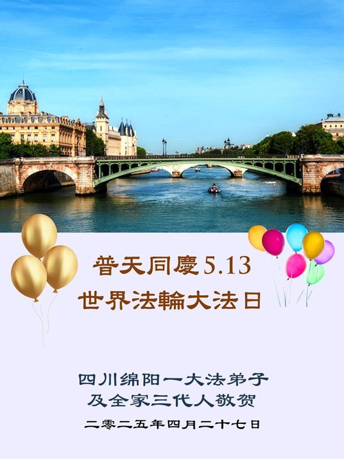 (Minghui.org) May 13, 2025, marks the 26th World Falun Dafa Day and the 33rd anniversary of the public introduction of Falun Dafa. The day is also the birthday of Master Li, the founder of Falun Dafa. Practitioners around the world are sending their heartfelt greetings to celebrate this grand occasion and honor revered Master on this special day.