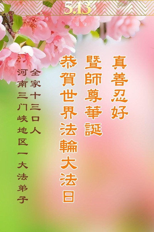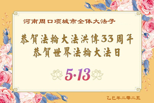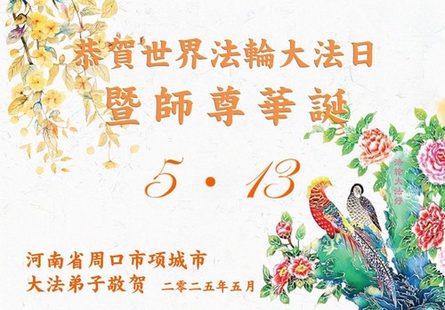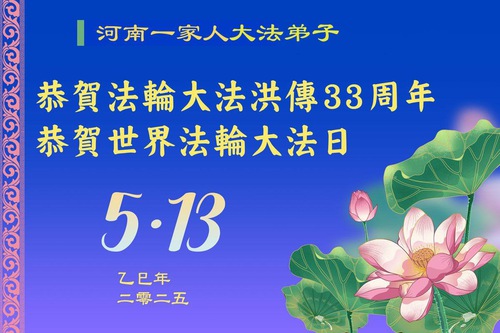 (Minghui.org) May 13, 2025, marks the 26th World Falun Dafa Day and the 33rd anniversary of the public introduction of Falun Dafa. The day is also the birthday of Master Li, the founder of Falun Dafa. Practitioners around the world are sending their heartfelt greetings to celebrate this grand occasion and honor revered Master on this special day.