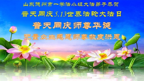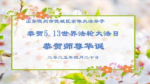 Falun Dafa Practitioners from Dezhou City Wish Revered Master a Happy Birthday and Celebrate World Falun Dafa Day!