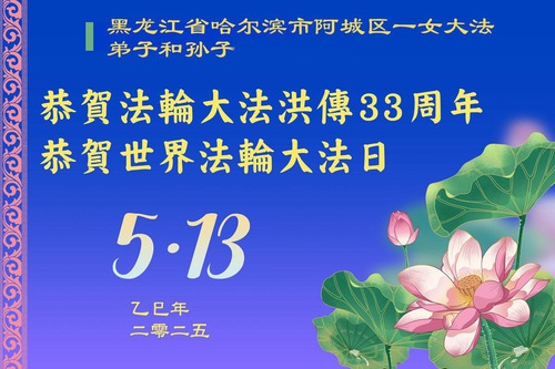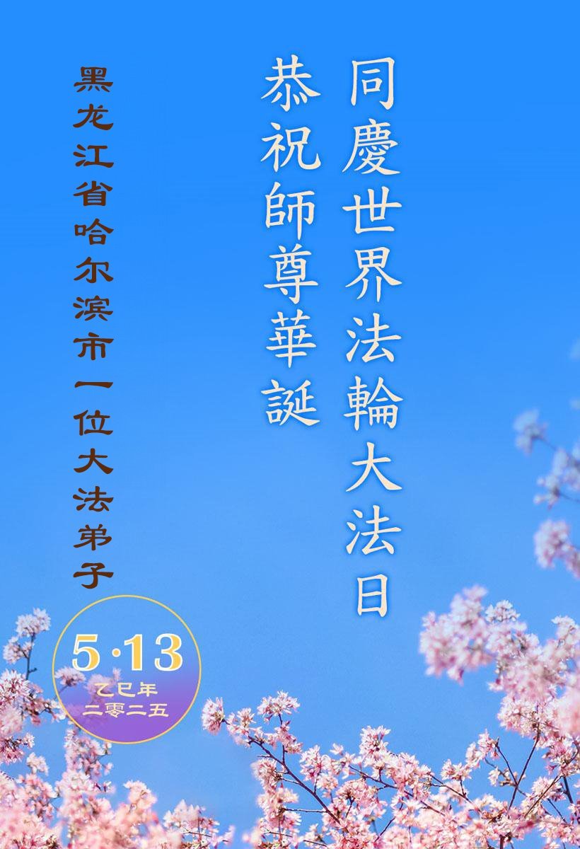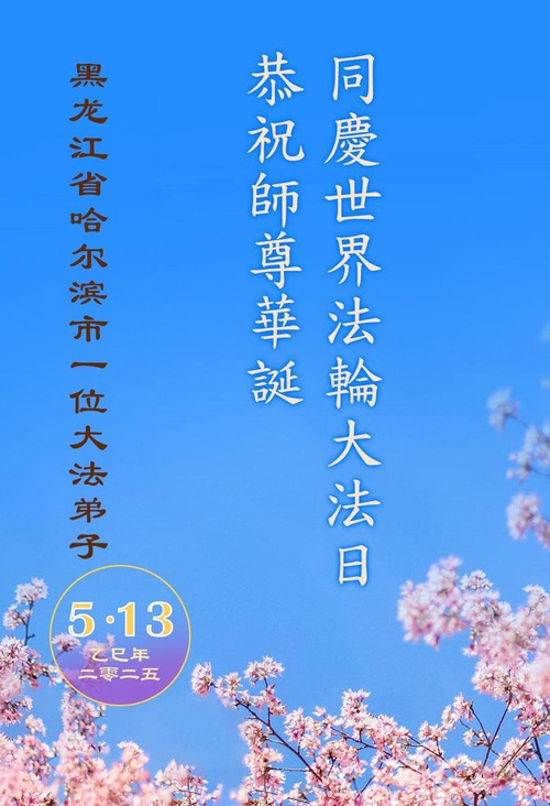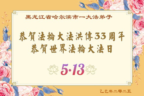 Falun Dafa Practitioners from Harbin City Wish Revered Master a Happy Birthday and Celebrate World Falun Dafa Day!