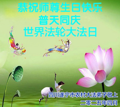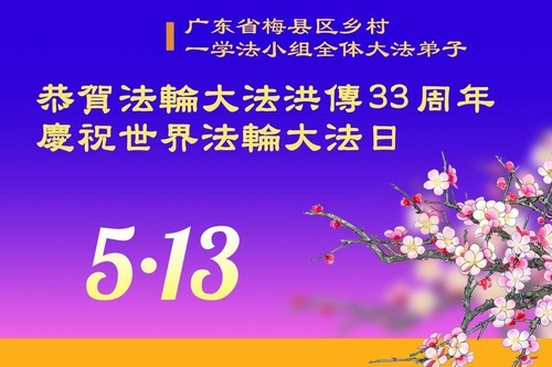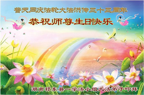 (Minghui.org) Many practitioners in rural areas of China are sending in their greetings to celebrate World Falun Dafa Day and the 33rd anniversary of Falun Dafa’s introduction to the public on May 13. They also respectfully wish Master Li a happy birthday.