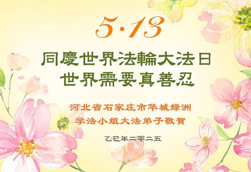 Falun Dafa Practitioners from Shijiazhuang City Wish Revered Master a Happy Birthday and Celebrate World Falun Dafa Day!