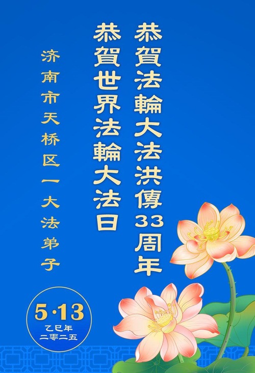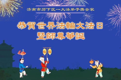 Falun Dafa Practitioners from Jinan City Wish Revered Master a Happy Birthday and Celebrate World Falun Dafa Day!