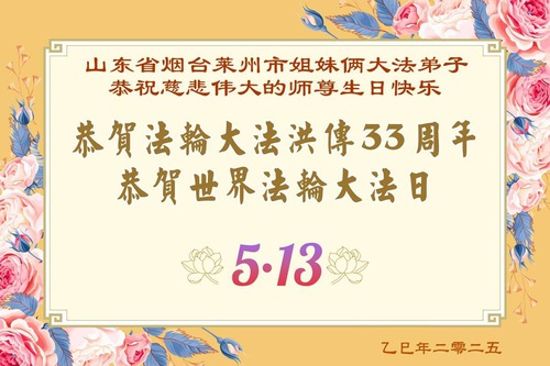 Falun Dafa Practitioners from Shandong Province Wish Revered Master a Happy Birthday and Celebrate World Falun Dafa Day