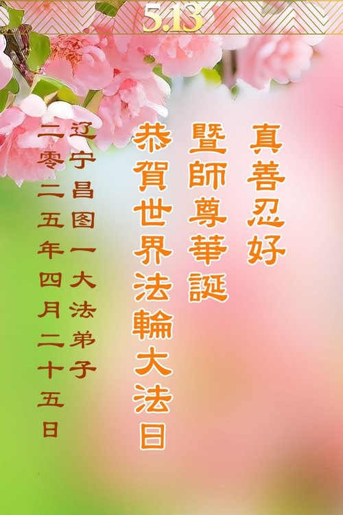 (Minghui.org) May 13, 2025, marks the 26th World Falun Dafa Day and the 33rd anniversary of the public introduction of Falun Dafa. This day is also the birthday of Master Li Hongzhi, the founder of Falun Dafa. Practitioners around the world are sending their heartfelt greetings to celebrate this grand occasion and honor revered Master on this special day.