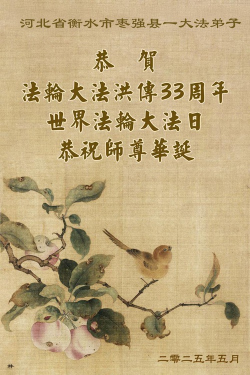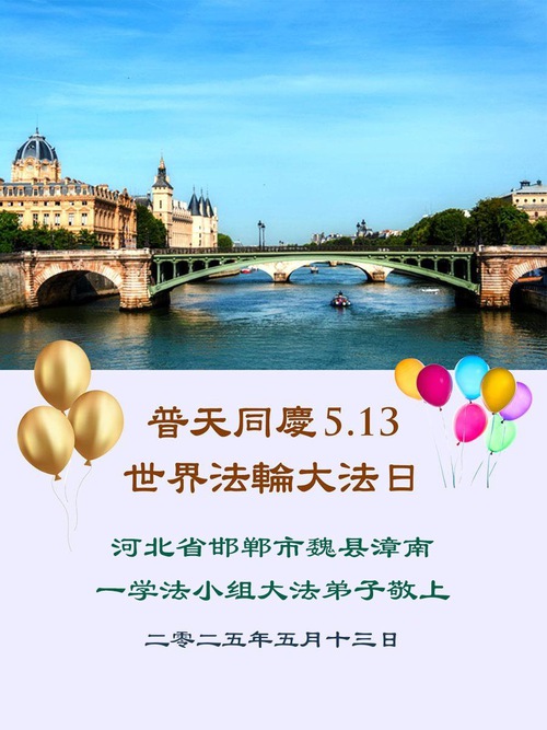 (Minghui.org) May 13, 2025, marks the 26th World Falun Dafa Day and the 33rd anniversary of the public introduction of Falun Dafa. This day is also the birthday of Master Li Hongzhi, the founder of Falun Dafa. Practitioners around the world are sending their heartfelt greetings to celebrate this grand occasion and honor revered Master on this special day.