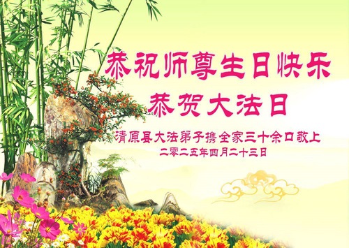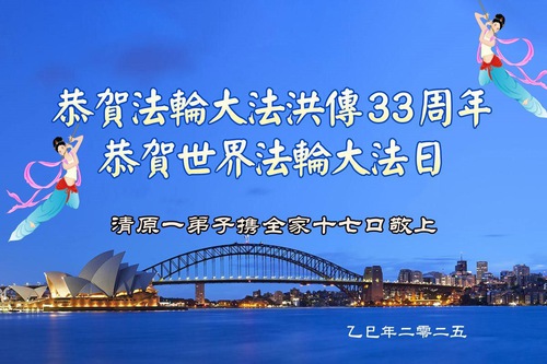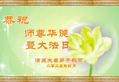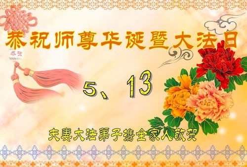 (Minghui.org) May 13, 2025, marks the 26th World Falun Dafa Day and the 33rd anniversary of the public introduction of Falun Dafa. This day is also the birthday of Master Li, the founder of Falun Dafa. Practitioners around the world are sending their heartfelt greetings to celebrate this grand occasion and honor revered Master on this special day.